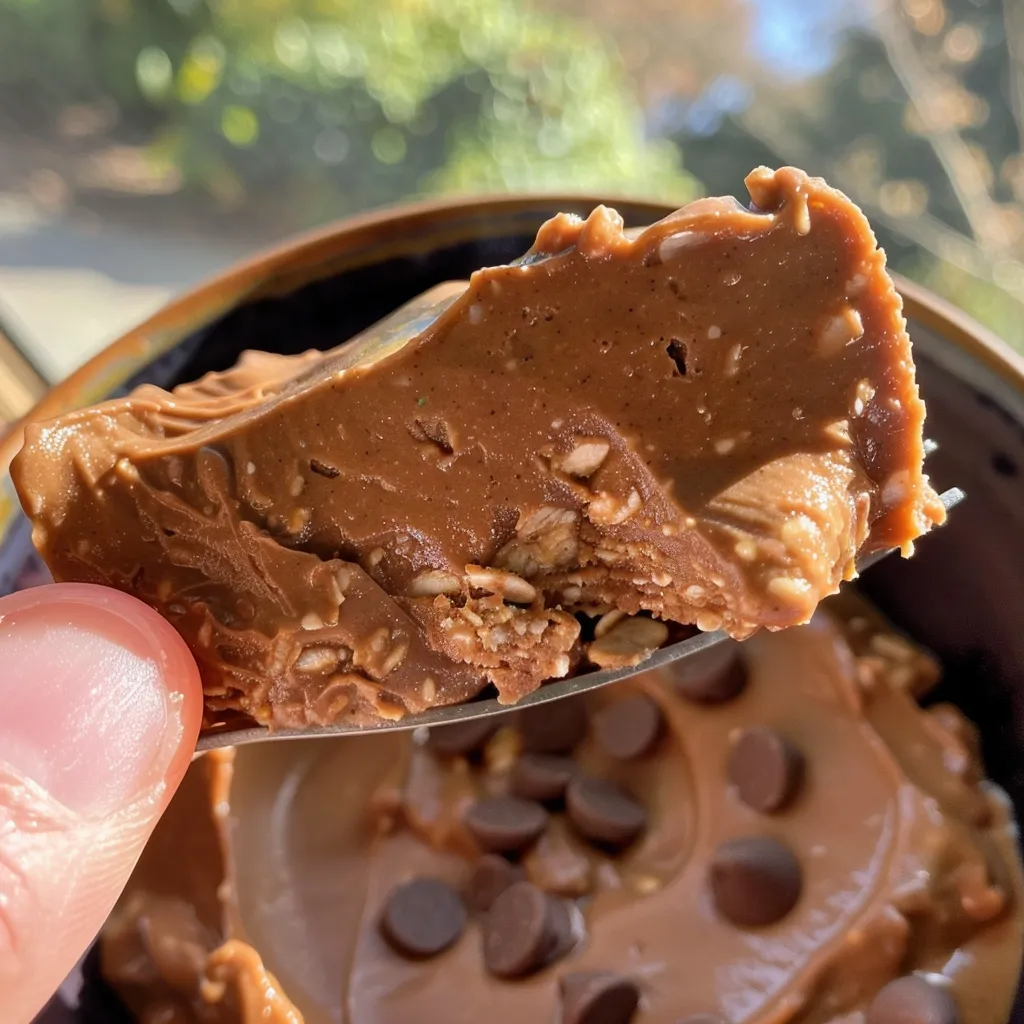 Porção de aveia com chocolate e manteiga de amendoim, destacando a textura cremosa e os ingredientes.
